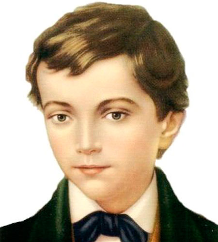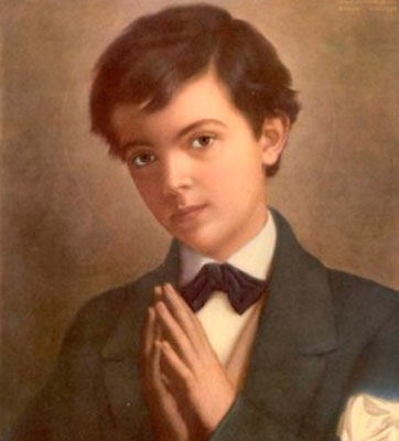 Domingo Savio, nace el 2 de abril de 1842 en San Juan de Riva, Italia. En la primera comunión, a los 7 años trazó su proyecto de vida. Acogido a los 12 años por Don Bosco en el oratorio de Turín, le pide que lo ayude a "Hacerse Santo". Manso,sereno y alegre, ponía gran empeño en los deberes de estudiante y en ayudar de todas maneras a los compañeros, enseñándoles el catecismo, poniendo en paz las peleas.Un día dijo a un compañero apenas legado al oratorio" no te olvides que nosotros hacemos consitirla santidad en estar muy alegres". Procuremos" solamente evitar el pecado, como un gran enemigo que nos roba la gracia de Dios y la paz del corazón, y cumplir exactamente nuestros deberes".
